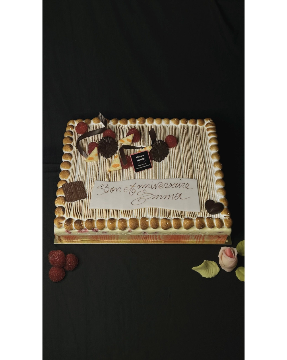 Une Mousseline légère, des framboises de la région, et un biscuit