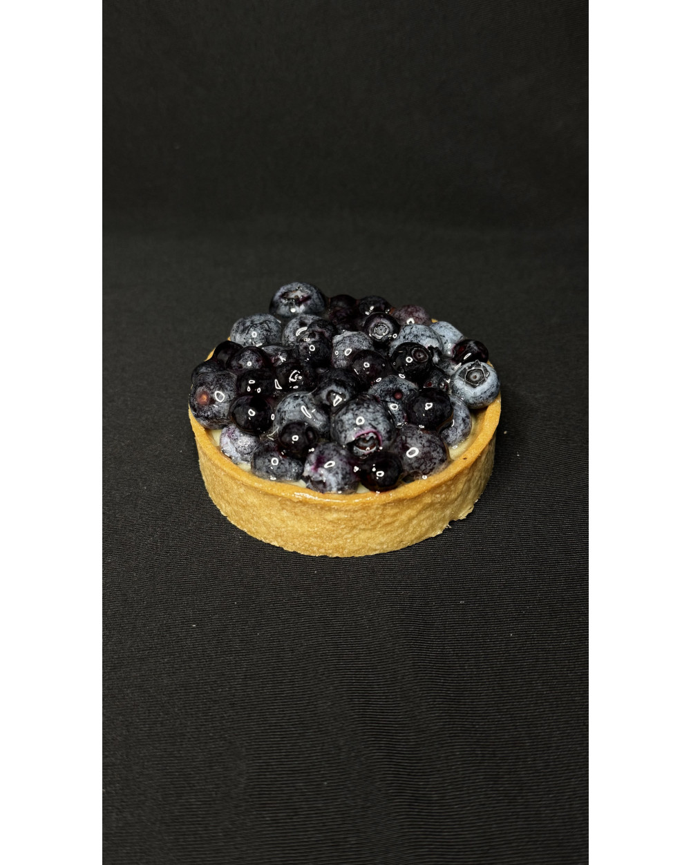 Une tarte aux Myrtilles de notre région (notament des monts du Lyonnais), sur un lit de crème patissière, dans un fond de tarte délicieusement croquant !
